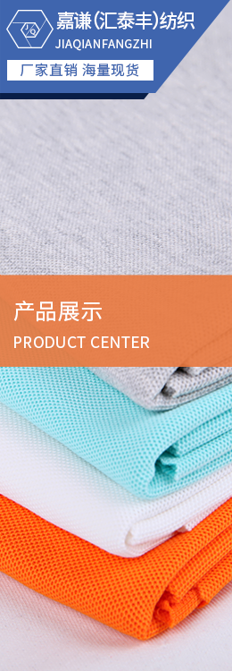 平紋布:各類拉架平紋、普通平紋、花式平紋,面料紋路清晰、光澤好,成分包括100C、100T、100N、T/C、CVC、N/C、N/T、MODAL、TENCEL、ROYAN、BAMBOO等,適宜合類休閑、運動、時尚、商務及內衣類服飾.<br /> 珠地布:各類單雙珠、六角、斜紋珠地,珠眼飽滿、顆粒清晰,伸縮保形性好,吸濕、透氣,可兼做抗紫外、吸濕導汗、香味等功能,適宜各類休閑、商務、運動類T恤.<br /> 健康布:組織精密、紋路清晰、手感爽滑立挺,膚感強,適宜各類運動、休閑、時尚類服裝,成分包括100C、100T、T/C、CVC、C/R等.<br /> 衛衣布:各類單、雙衛衣,拉架衛衣,布面肌理豐富,耳仔整齊,立體飽滿,有良好的吸濕透氣及保暖功能.<br /> 不倒絨:保暖、透氣,不起球、不掉毛,適宜合類休閑套裝,情侶、新套裝、保暖內衣.<br /> 橫機面料:11、22及提花類,用于各類領袖及下欄配套.<br/>